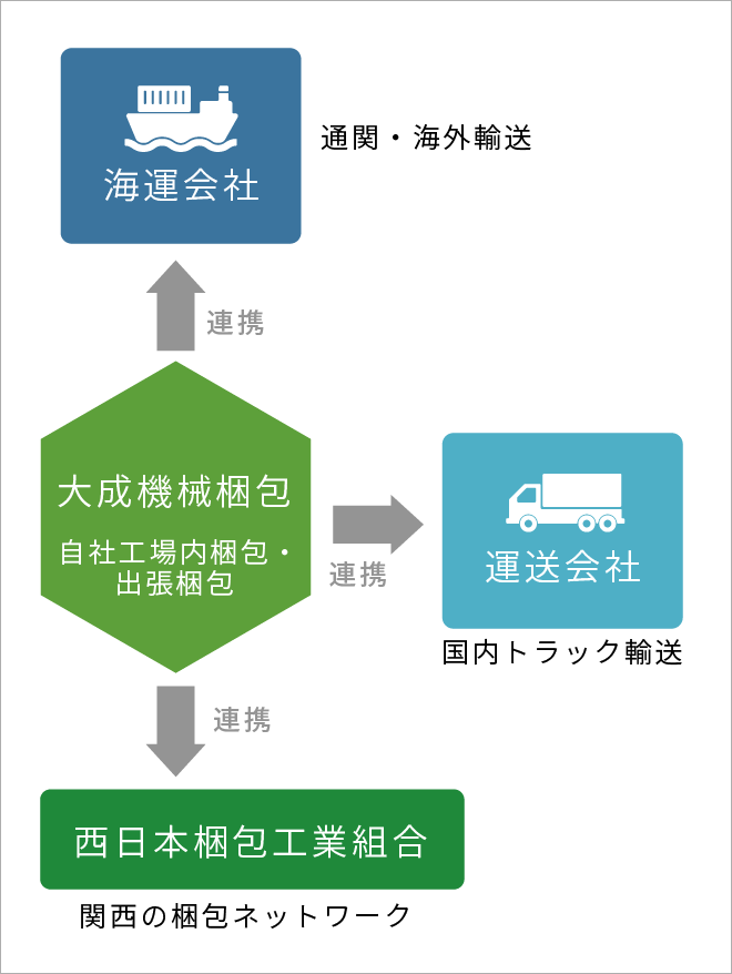 各種輸送に関することも、すべて当社で承ります。安全・安心・信頼のおける輸送サービスをご提供致しますので、梱包後の輸送に関してもお気軽にご相談ください。